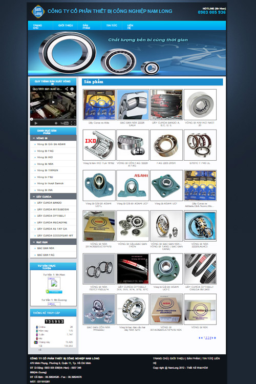 Danh mục sản phẩm bao gồm tất cả các sản phẩm của đơn vị, chúng được thể hiện ở giữa màn hình, giúp người xem có thể tìm thấy tất cả những sản phẩm một cách dễ dàng. Không dừng lại ở đó, Trần Lê đã kết hợp hai tông màu xanh dương và nâu xám cho trang web. Màu sắc này mang lại sự hiện đại, thân thiện với người dùng. Màu xanh được đặt ở những vị trí chủ chốt nhằm làm nổi bật các đoạn tetx trên website như: thanh menu, danh mục sản phẩm, mục tư vấn trực tuyến, thống kê... Tất cả những yếu tố này kết hợp với nhau một cách hài hòa, trang nhã để mang lại một trang web đẹp, chuyên nghiệp.